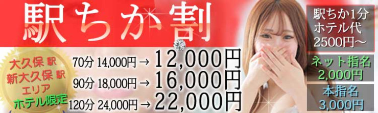 | 無料 | 新大久保駅・大久保駅・歌舞伎町(ホテルのみ) |