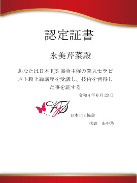 【FJS協会認定 睾丸セラピスト検定1級合格】