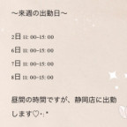 こんにちは〜 本日11時半〜東静岡出勤です✨