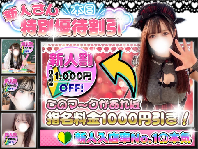 入店から一か月経ってない新人の女の子に対して特別な割引のご案内となります!!